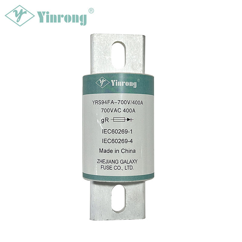 Кинескиот производител на осигурувачи со голема брзина Galaxy Fuse (Yinrong) обезбедува различни кружни осигурувачи во северноамерикански стил. Осигурувачот со голема брзина YRS94FA gR е специјално дизајниран за заштита на полупроводнички уреди. Осигурувачот со голема брзина YRS94FA gR е дизајниран и за заштита од преоптоварување и за заштита од краток спој. Осигурувачот со голема брзина YRS94FA gR обезбедува широк рејтинг на струја од 225-400A под номинален напон од 700V (AC/DC), кои се погодни за краток спој и резервна заштита на фреквенциските конвертори, исправувачи, инвертери, разни напојувања и други полупроводници опрема, како и батерии, мотори, кондензатори, жици и друга опрема и уреди. Овој YRS94FA gR осигурувач со голема брзина е во согласност со националниот стандард GB13539.4 и меѓународниот стандард за електрични комитети IEC60269-4. Освен тоа, може да се користи и за краток спој за напојувачки системи за погон на електрични возила, системи за конверзија на енергија, батерии за складирање и енергија, кондензатори за складирање енергија, контролери на инвертер, полначи, жици, автомобилски уреди и друга резервна заштита.